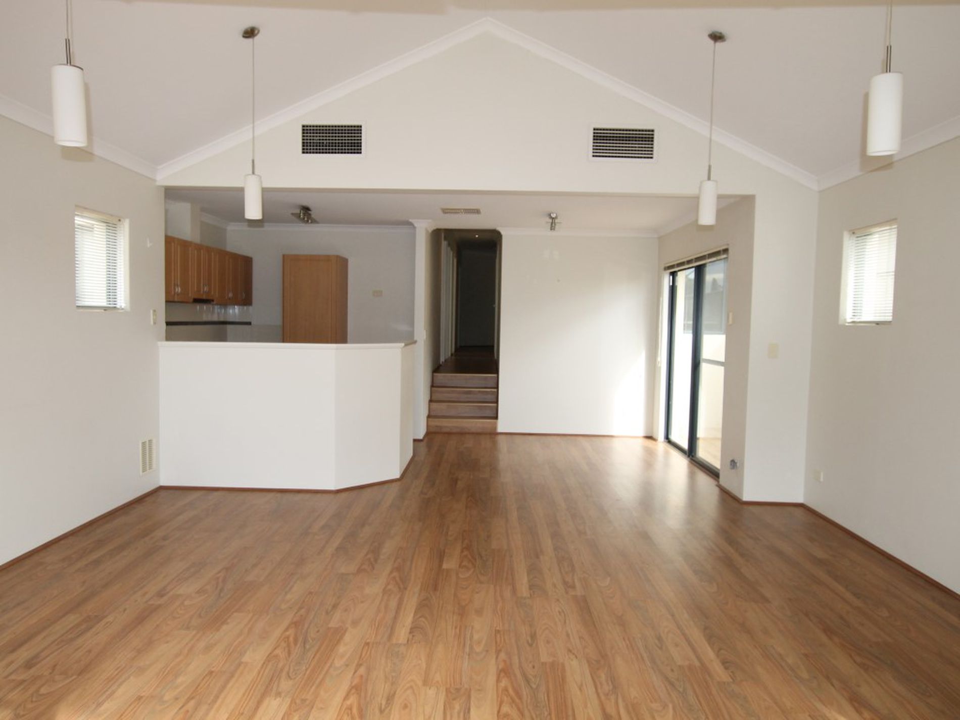 High ceilings in the family/meals/kitchen area